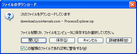 請求画面を表示するプログラムの詳細を調査するためにマイクロソフト社の「ProcessExplorer」(プロセス エクスプローラー)をダウンロードします。